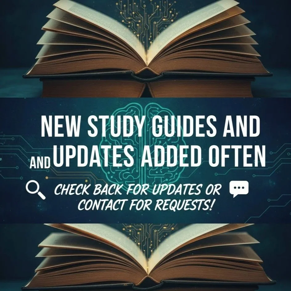 New study guides and updates added often check back for updates or contact for requests! Choose and Click Which Guide You Need SQL STUDY GUIDE PDF Use Cases Digital Marketing STUDY GUIDE Excel STUDY GUIDE PYTHon STUDY GUIDE Music Composition STUDY GUIDE Project Management STUDY GUIDE Accounting STUDY GUIDE C & C# & C++ Coding STUDY GUIDE Supply Chain STUDY GUIDE TAXES STUDY GUIDE Chemistry STUDY GUIDE Physics STUDY GUIDE Calculus STUDY GUIDE Statistics STUDY GUIDE Baking & Cooking STUDY GUIDE